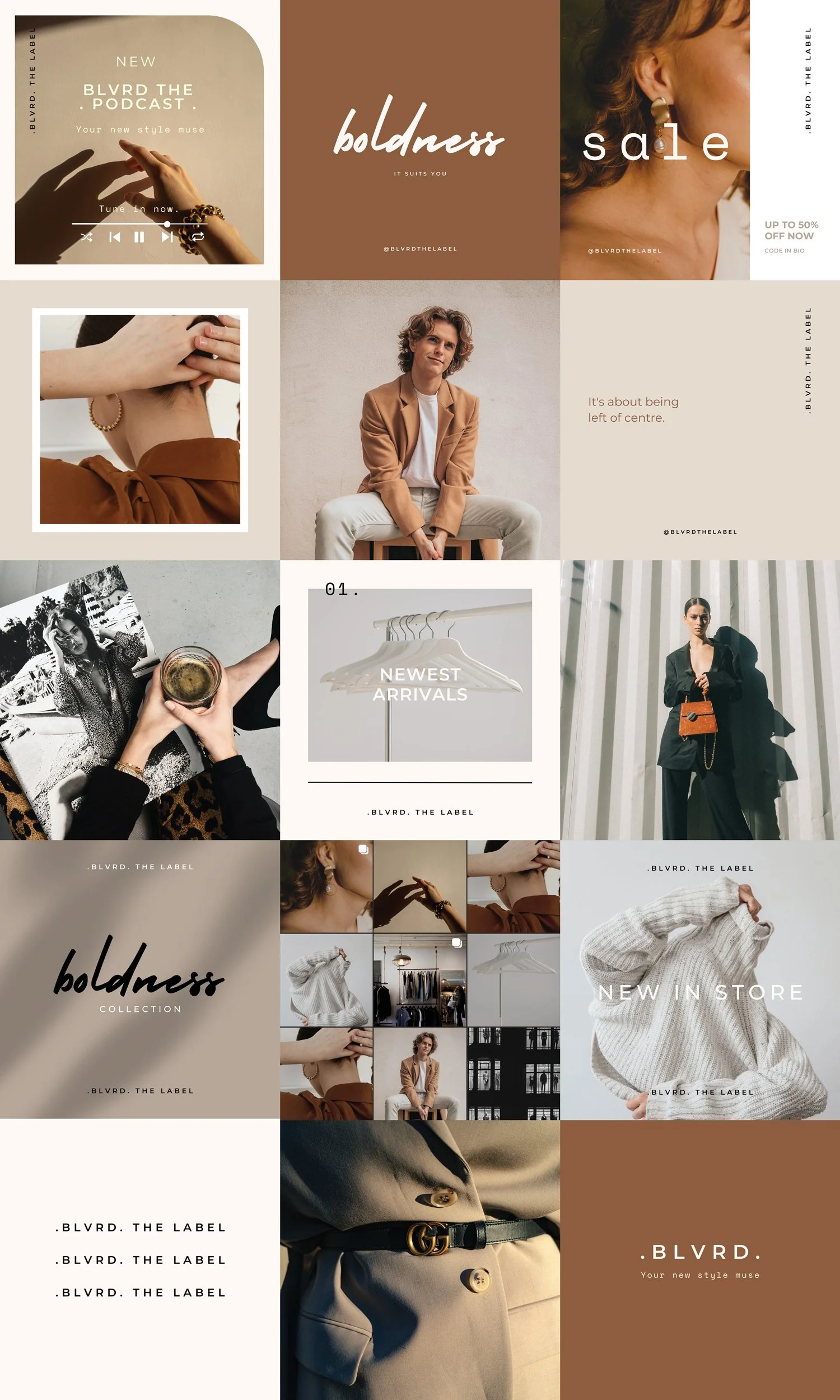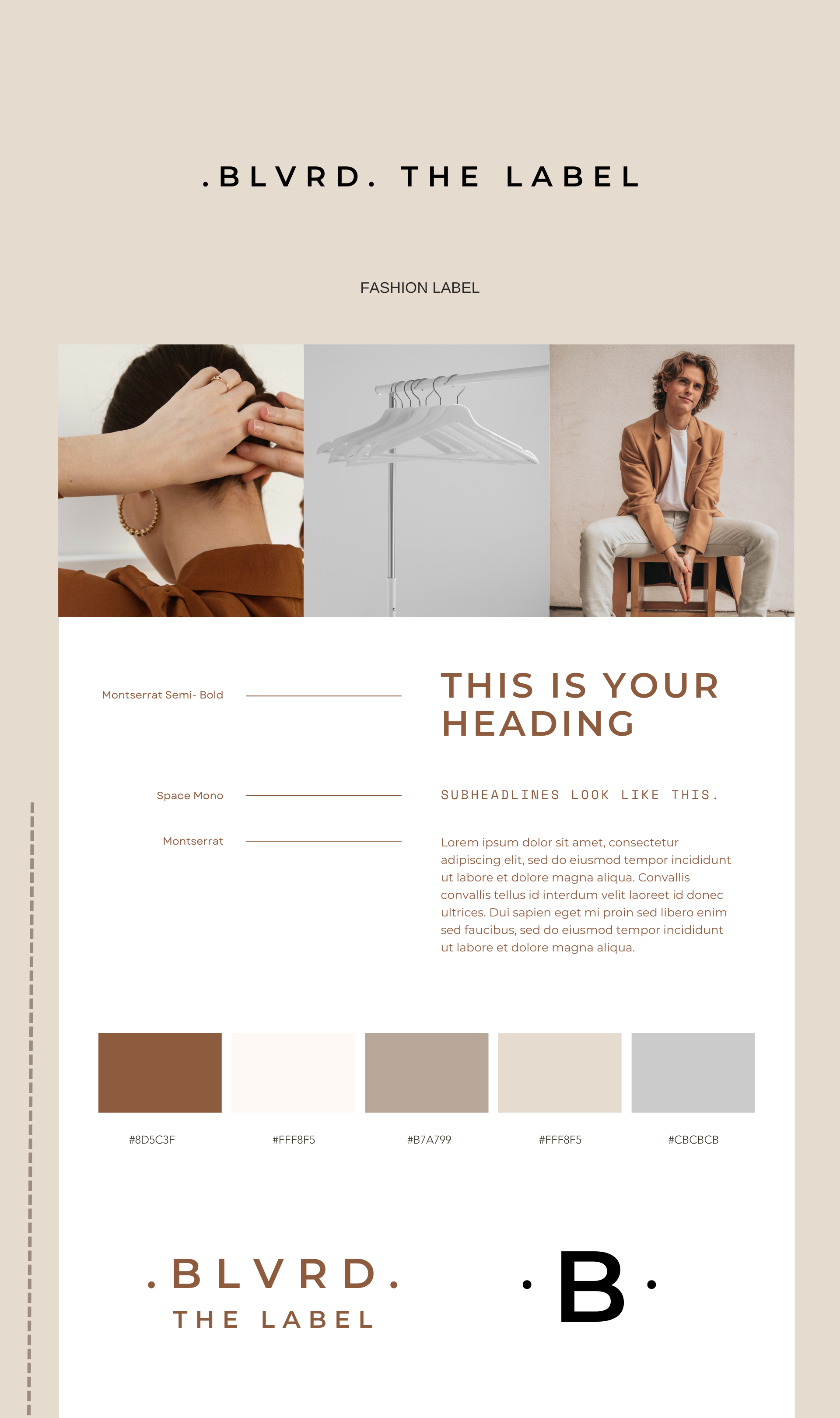 Meet Blvrd The Label. A brand designed for business owners in the fashion and lifestyle industries. This brand is clean and modern, using a strong, easy to read font to capture your audience quickly. Blvrd The Label is sure to turn heads.